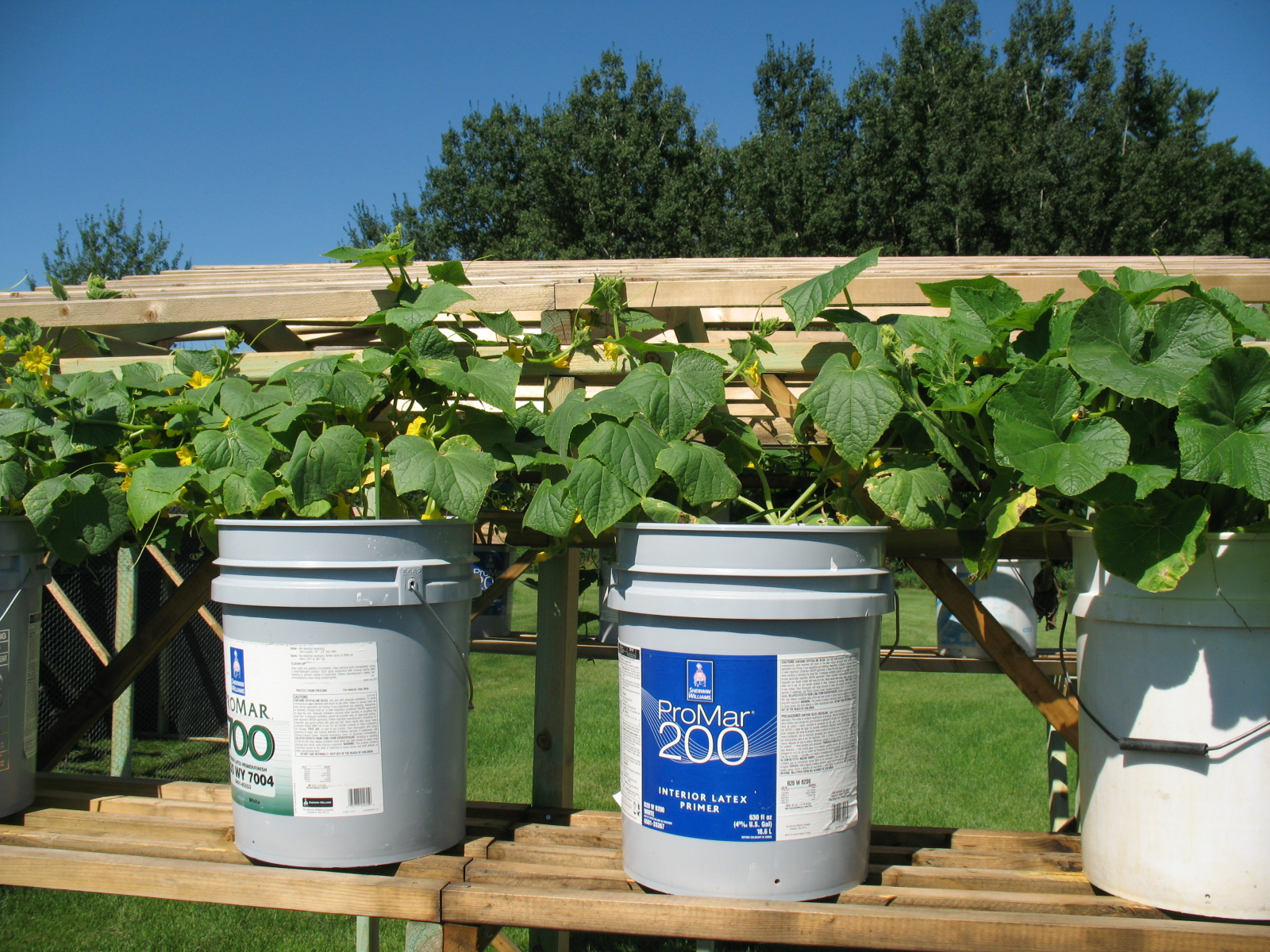 Cucumbers on our trellis