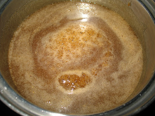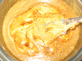 Pour over cereal mixture and mix well.  The liquid portion does harden as it cools so try to mix quickly.