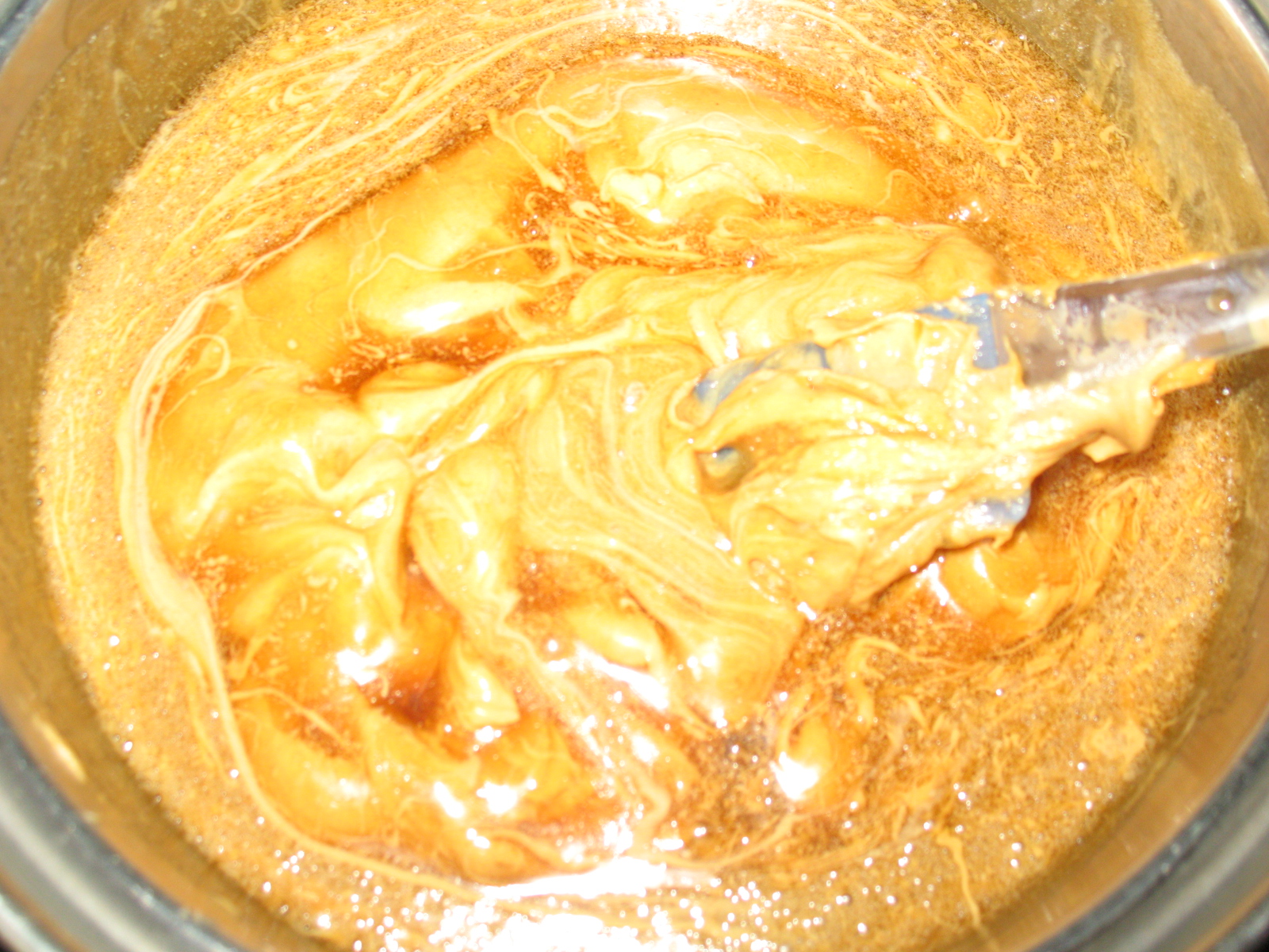 Mix brown sugar with the corn syrup or honey in a small pan.  Heat and stir until boiling.  Remove from heat.