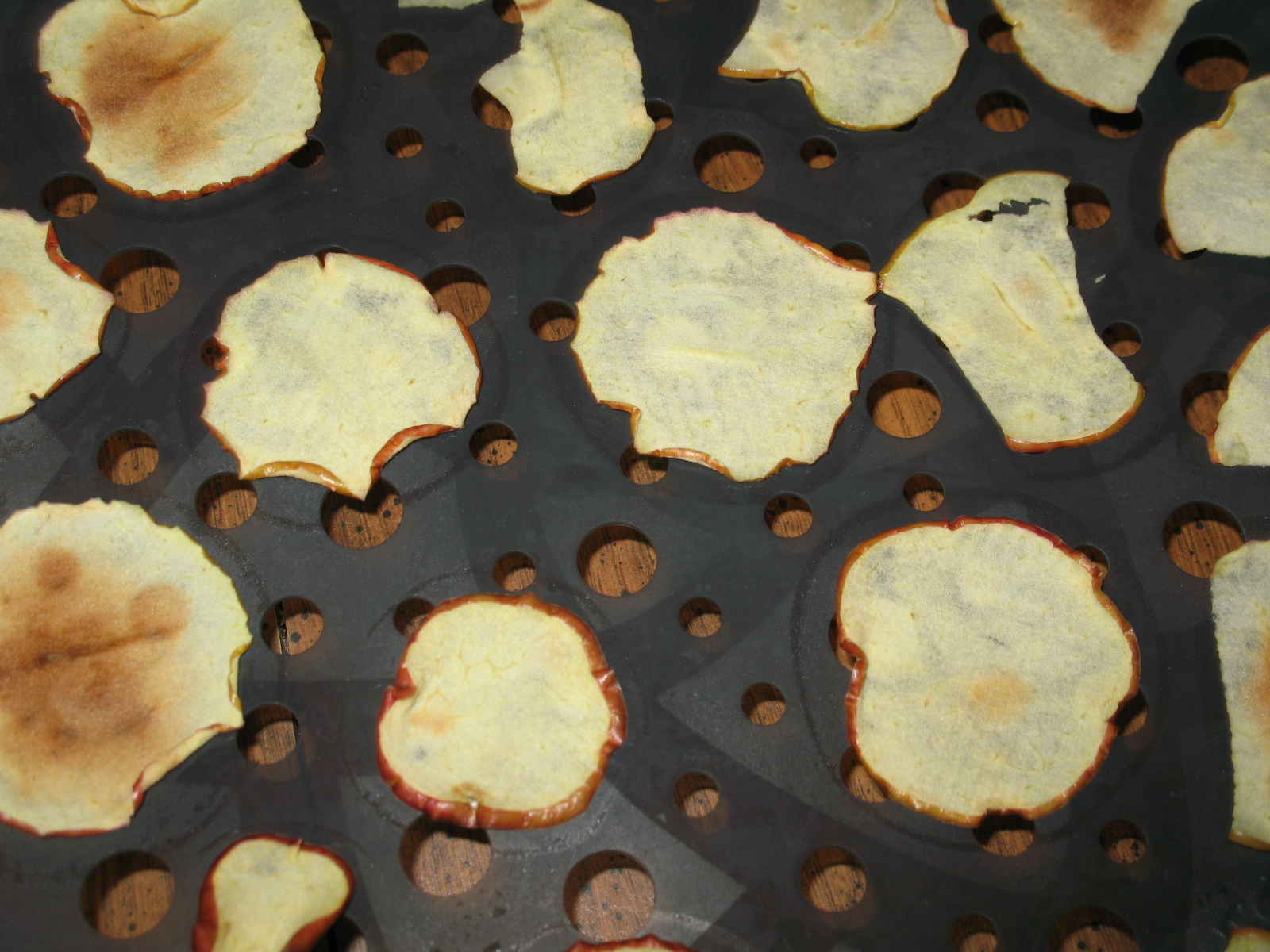 Here is a completed tray. The apple slices are listed as taking 3 mn 30 seconds. You have to play with the listed time a little bit, especially when adding more trays to provide adequate crispness.