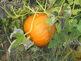 One of the pumpkins in the garden. Hopefully the applications milorganite keep the deer away. They devoured the pumpkins and squash last year the week before Halloween.