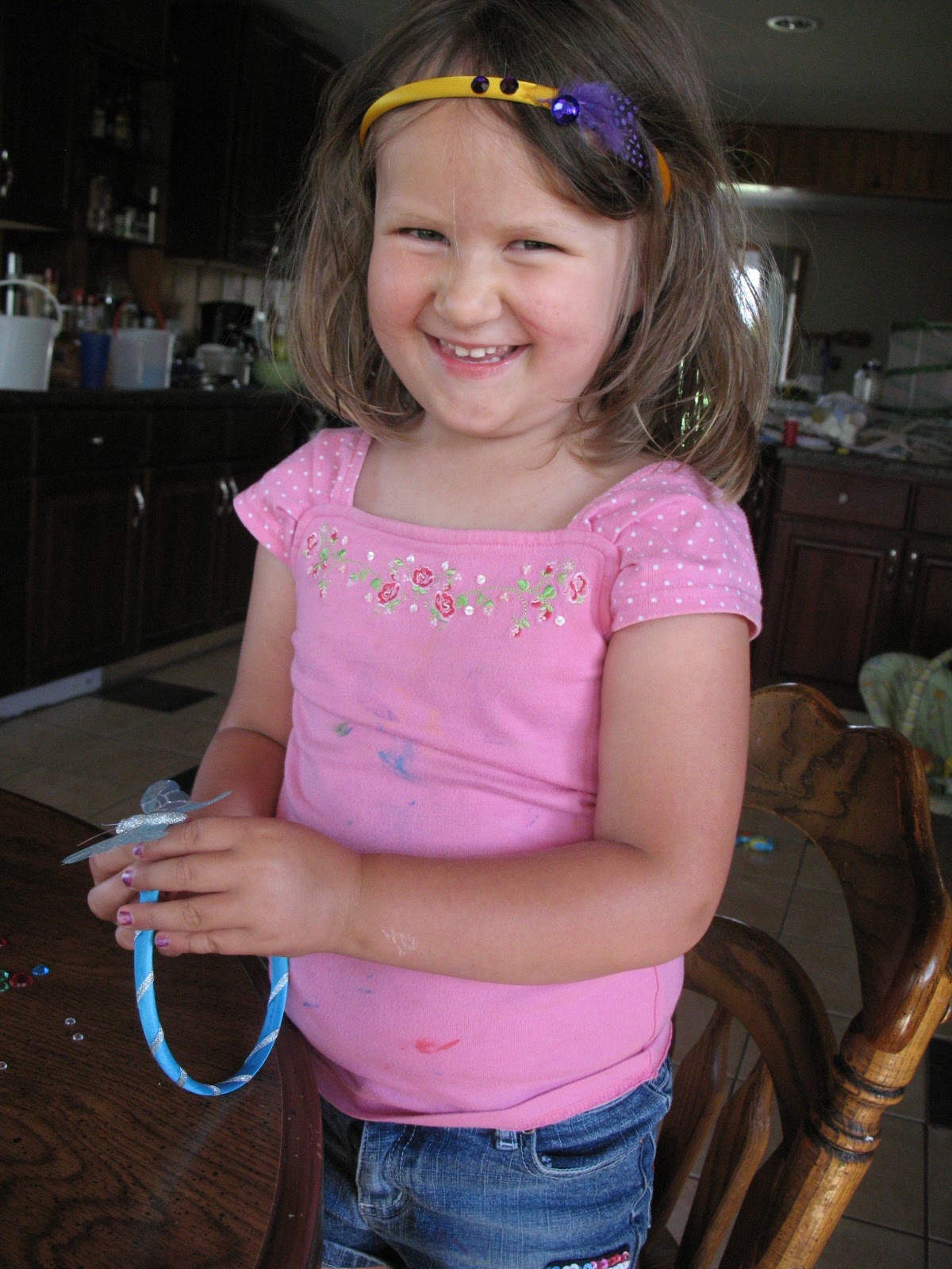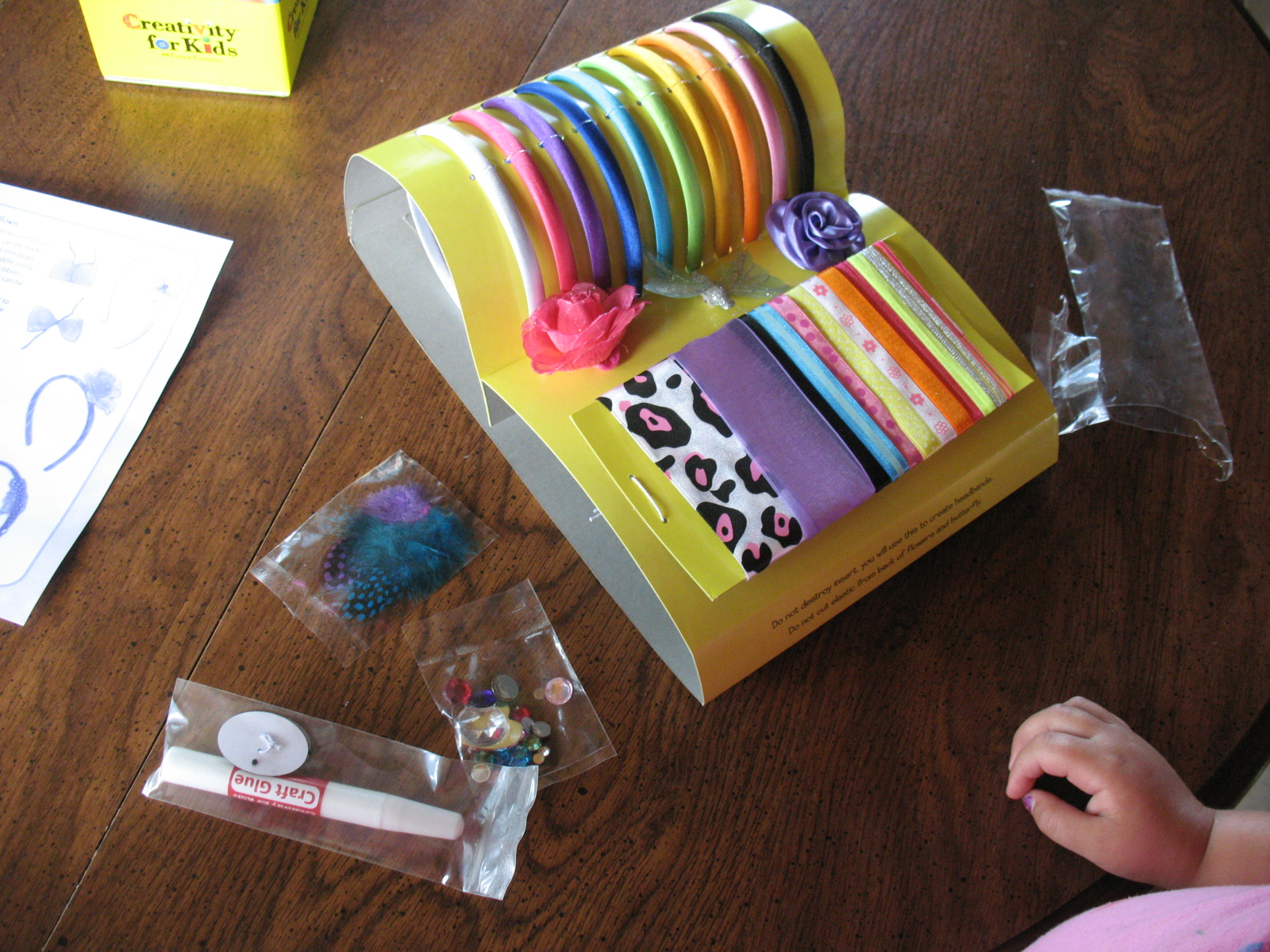 http://www.twoshadesofpink.blogspot.com, who features some wonderful craft ideas. Layne was so excited when she opened the box that we had to do assemble the headbands right away. Thankfully, time fell when the younger two were napping.