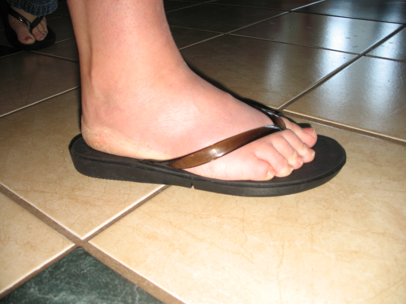 Here it is on my foot.  I like how it has a bit of a heel wedge and does feel good on my feet.  It has more support than other flip flops I have worn.