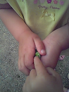 My girls love frogs and worms. Here is a tree frog that they had found a week ago. Both fascinated by the little amphibian.
