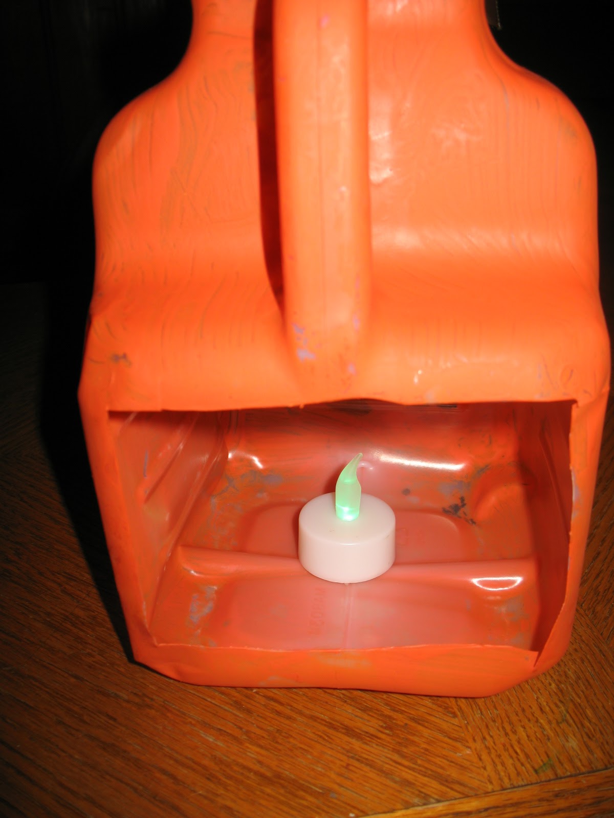 Although the girls only got to paint the pumpkins orange, they had a blast afterward with seeing the lights in them. The original post of Filth Wizardry referred to these pumpkins as a way to hold candy. I think I made these too shallow and cut too much off the back for them to serve that purpose.