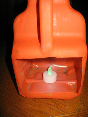 The milk jugs were rinsed out one final time before using. I took an exacto knife and cut out a panel from the back.