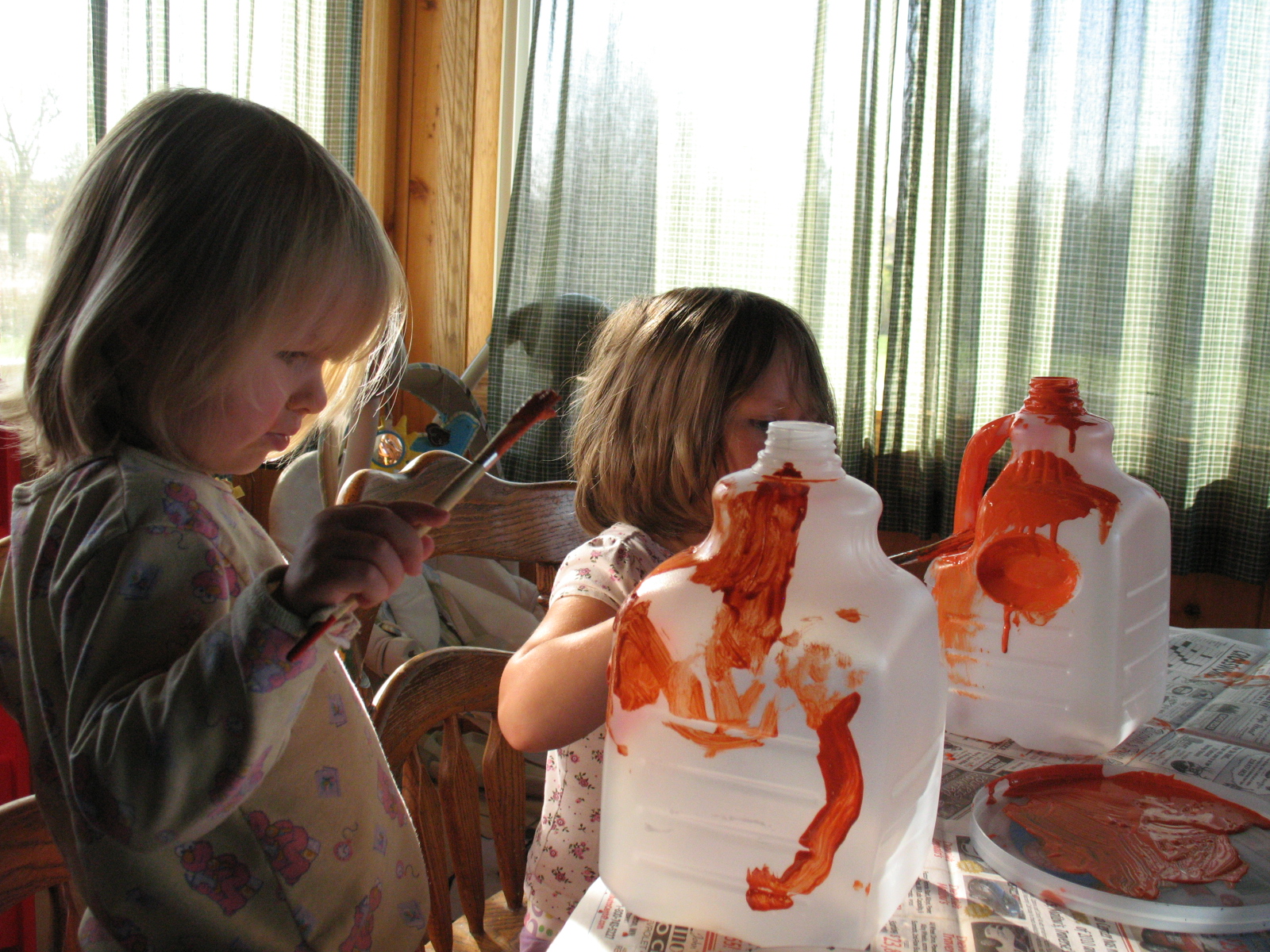 Both of the girls applying paint