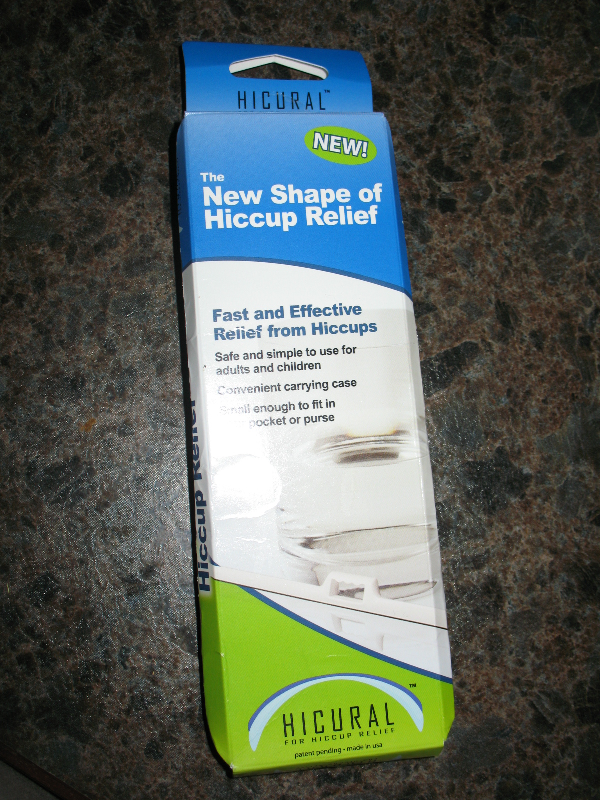 Hicural is a safe remedy to get rid of the hiccups. It is made of a polypropylene compound and is an over the counter tool. Hicural may be purchased at www.hicural.com for $7.99 with free shipping. It is not intended to relieve “chronic” hiccups.