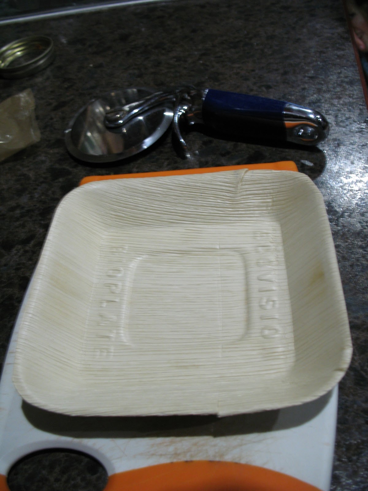 Marx Foods has allowed me to review pieces from their Eco-Friendly Palm Plates collection.  These plates are made from naturally discarded leaves from the Adaka Palm tree.  The trees are not harmed in any way, the old leaves are simply picked off the ground and re-used.  Then the leaves are rinsed in water, hand washed with water and turmeric, and then rinsed again with water.  They are air dried, hand stretched, and flattened.  The molding of the different plate shapes is done with a heat press and multiple shapes are cut from each leaf to avoid waste.  They are then sun dried and packaged for sale.