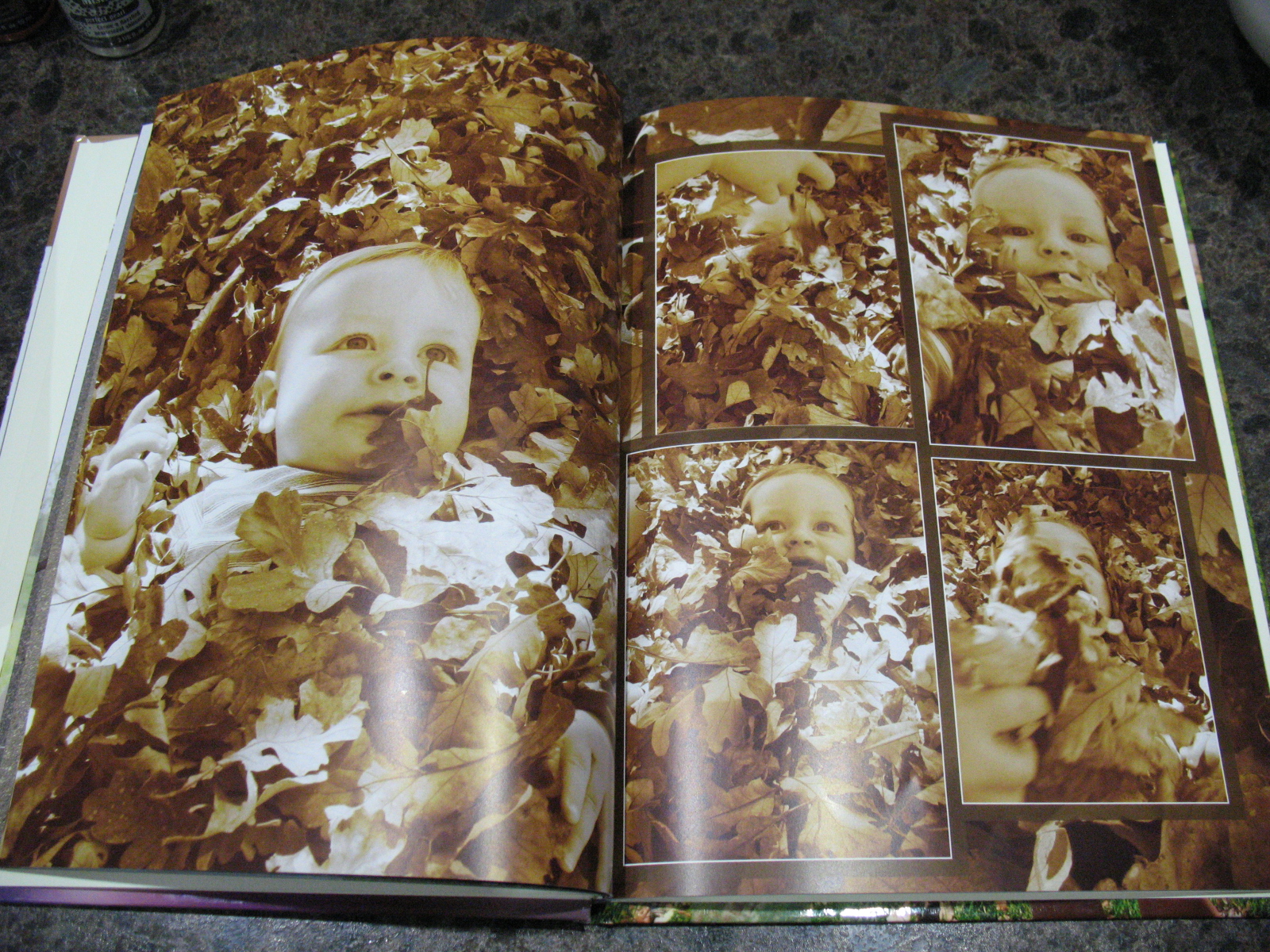 I like that the background of the large image is carried over as the background for the smaller images. I have done photo books with a few other companies in the past and it has been a solid set of background colors in a set scheme. I thought the pictures were very crisp and clear. The book itself, seems quite durable. This book would retail for $39.95 (26 page large hardcover photo book) + $10 designer fee + $7.99 shipping fee = $57.94. I loved the results.