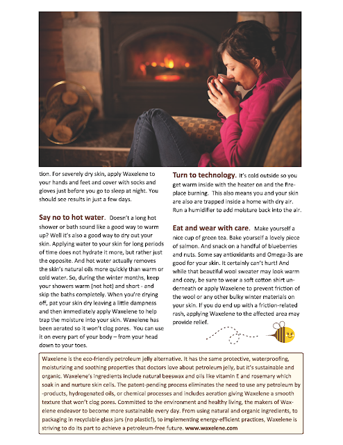 I do think Waxelene does a good job moisturizing and protecting the skin.  I like that the ingredients are natural, no need to apply something that starts off in the same whereabouts as the gasoline to fill my vehicle.  The scent is certainly better than what I remember petroleum jelly smelling like too.
